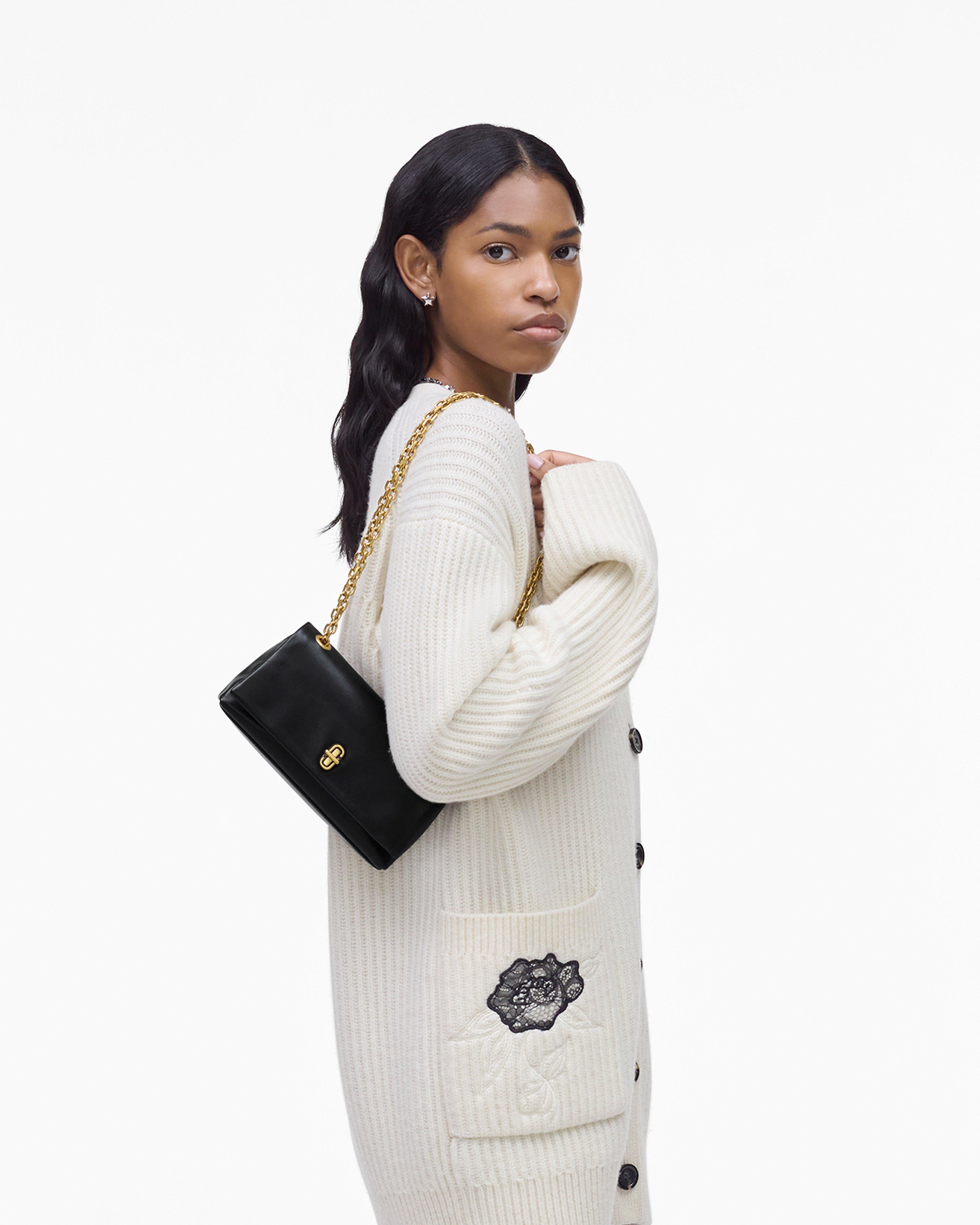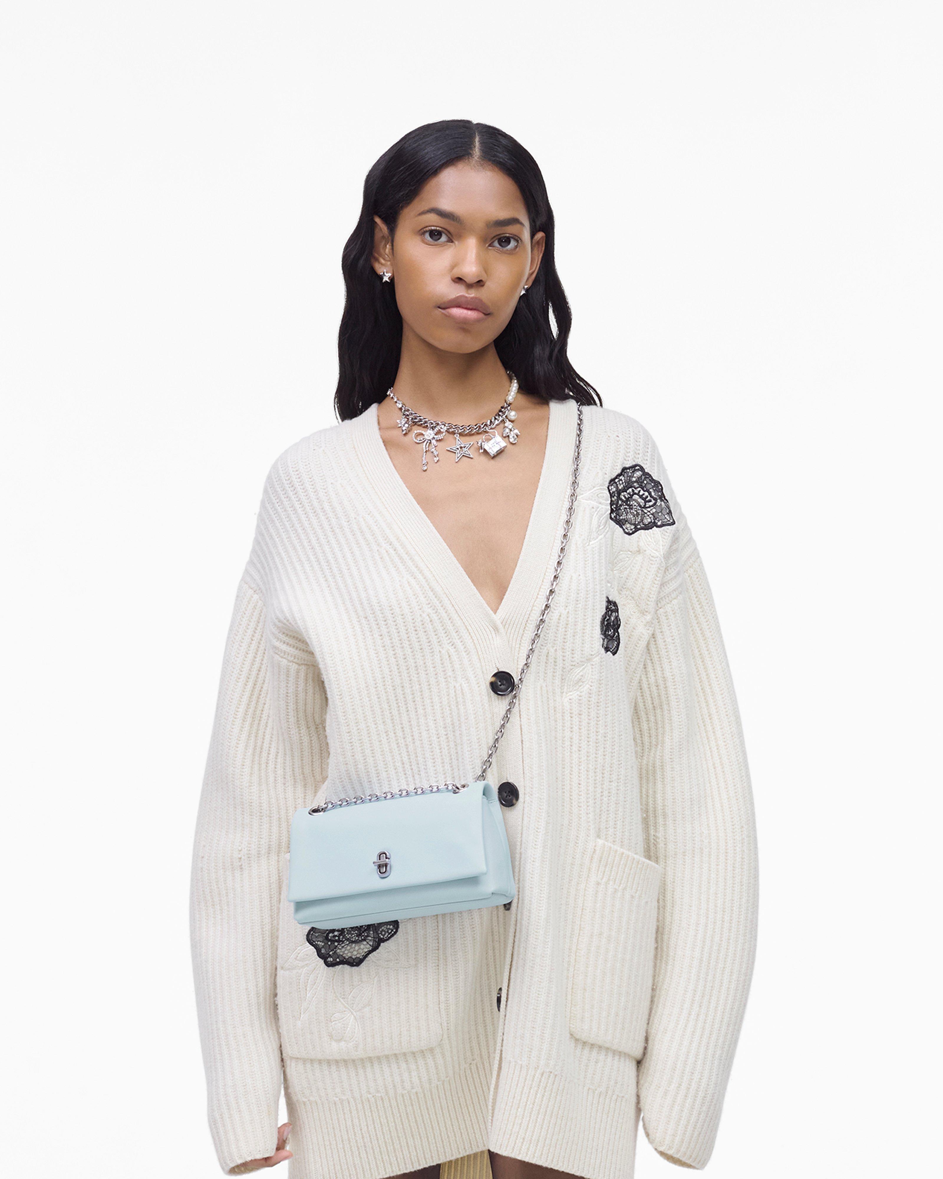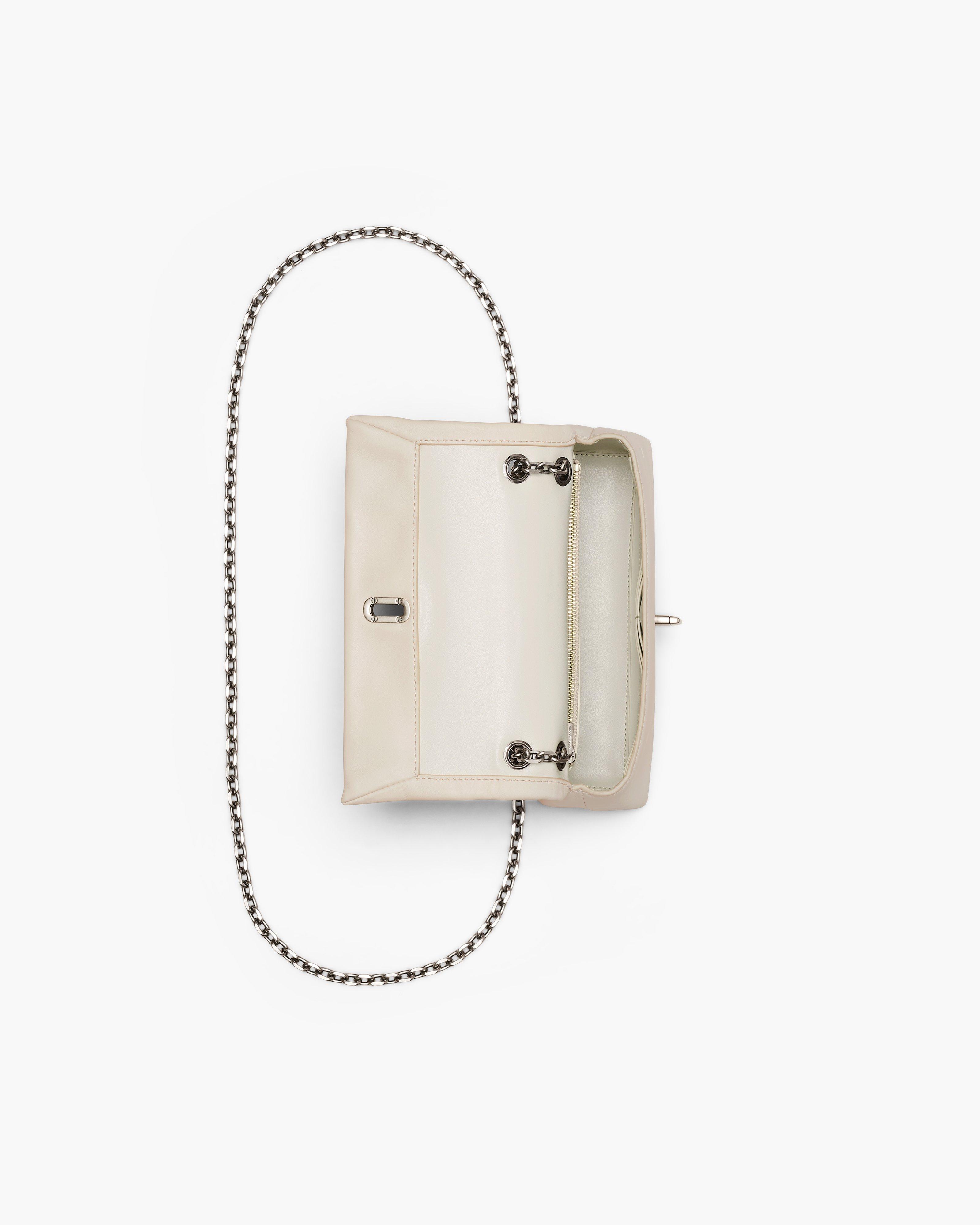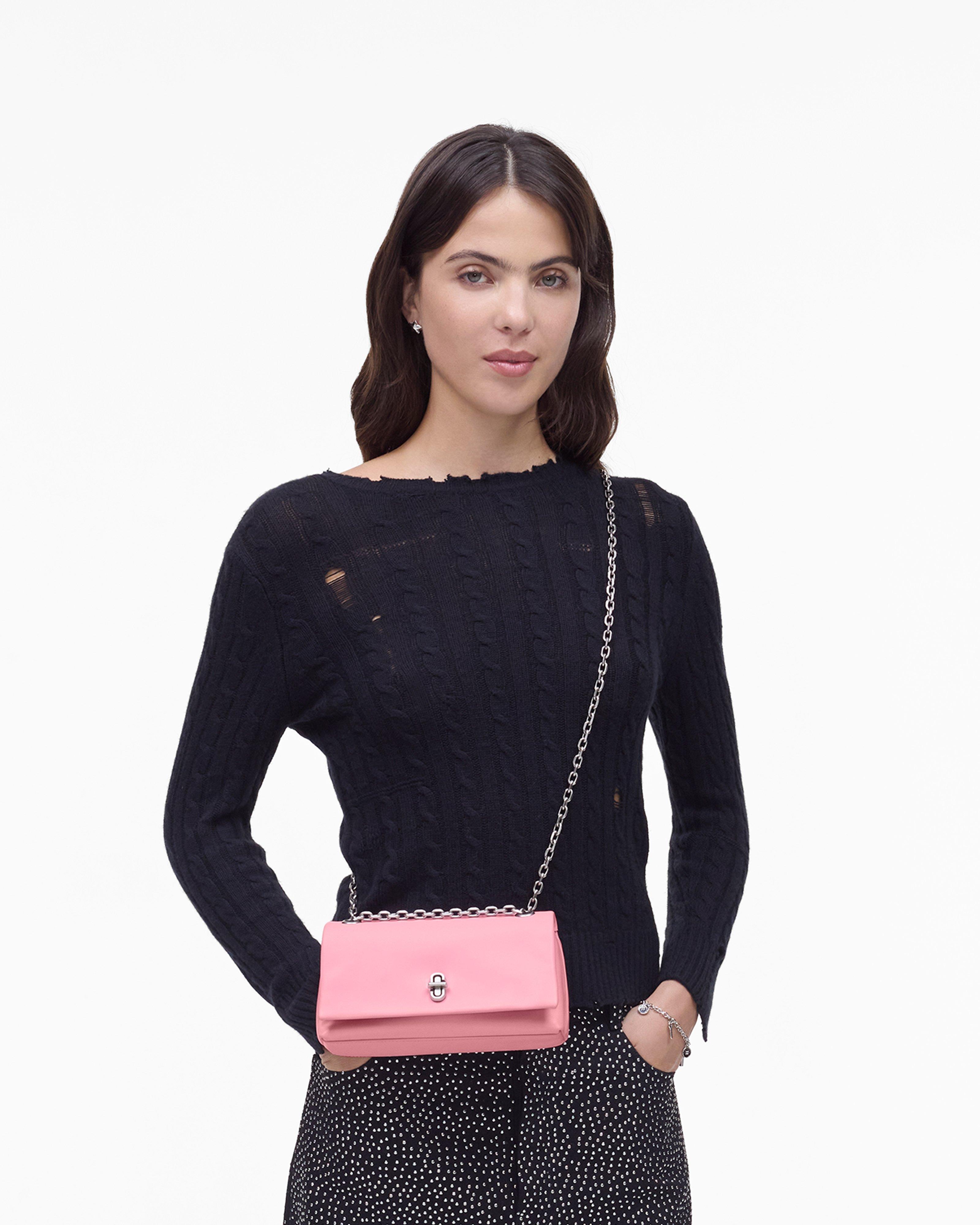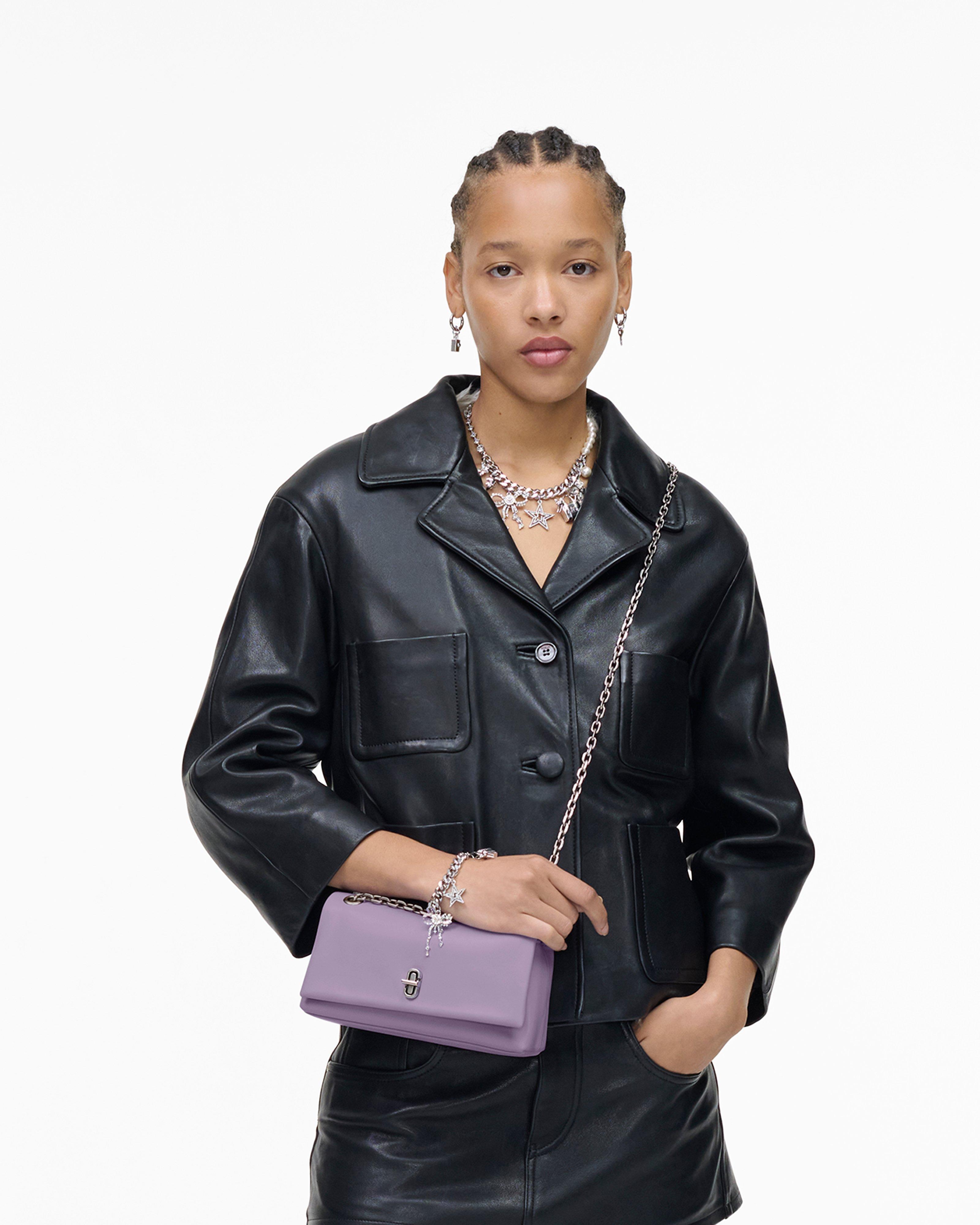 A sleek and elegant accessory inspired by the silhouette of our Dual collection. This high-style compact mini bag effortlessly stows your phone, credit cards, cash, keys and lipstick. Crafted in buttery smooth leather, The Dual Chain Mini Bag features an elevated J Marc turn-lock closure and a refined pull-through chain strap for over-the-shoulder or crossbody styling. Shop Marc Jacobs The Dual Chain Mini Bag