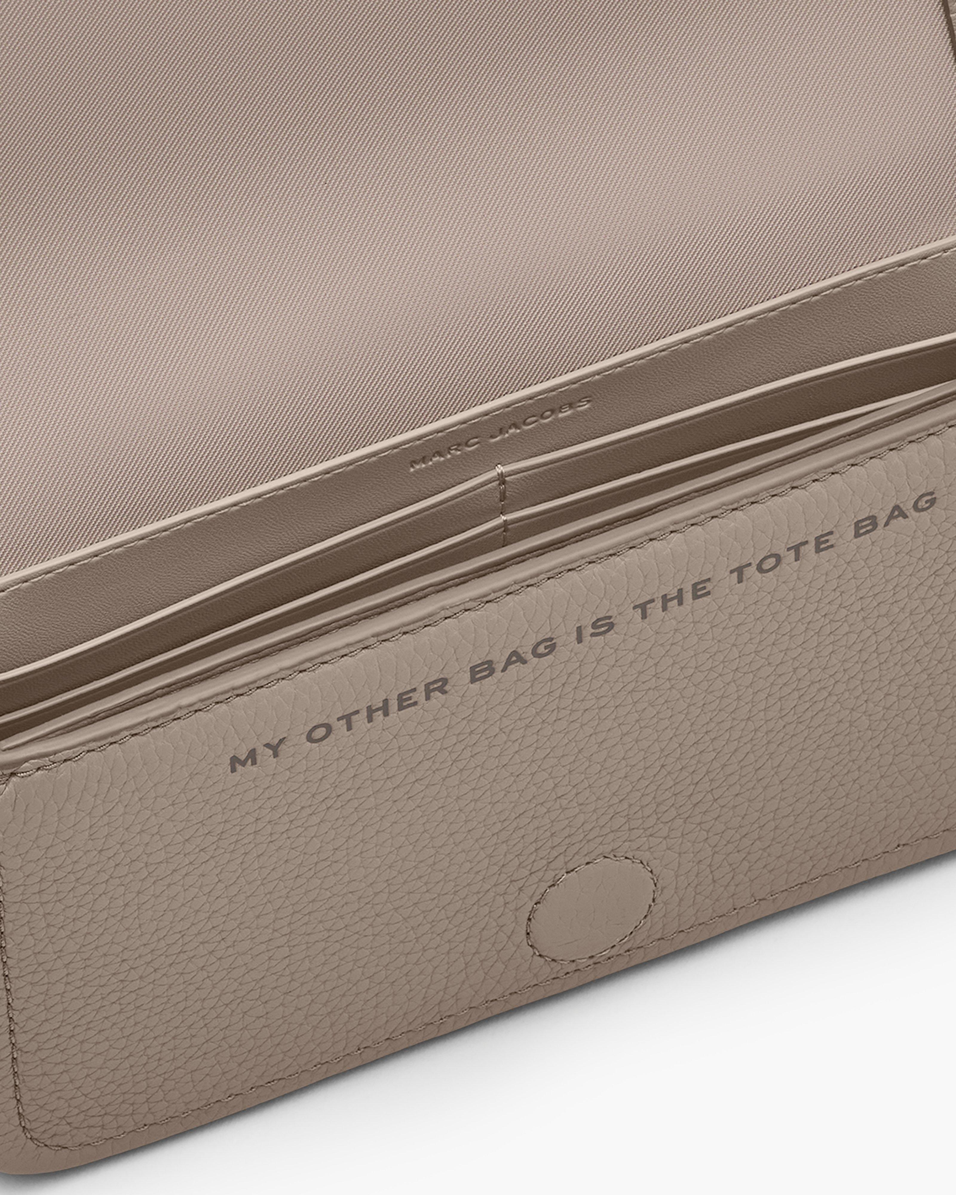 Mini bag, major personality. This crossbody silhouette is inspired by our bestselling tote and is finished with the words "my other bag is the tote bag" debossed on the inside. Crafted in full grain leather, each bag is designed with our namesake branding and features one slip pocket and eight card slots. Carry yours as a clutch or attach the adjustable, removable logo webbing strap for hands-free styling. Part of THE collection. Shop Marc Jacobs The Leather Mini Bag
