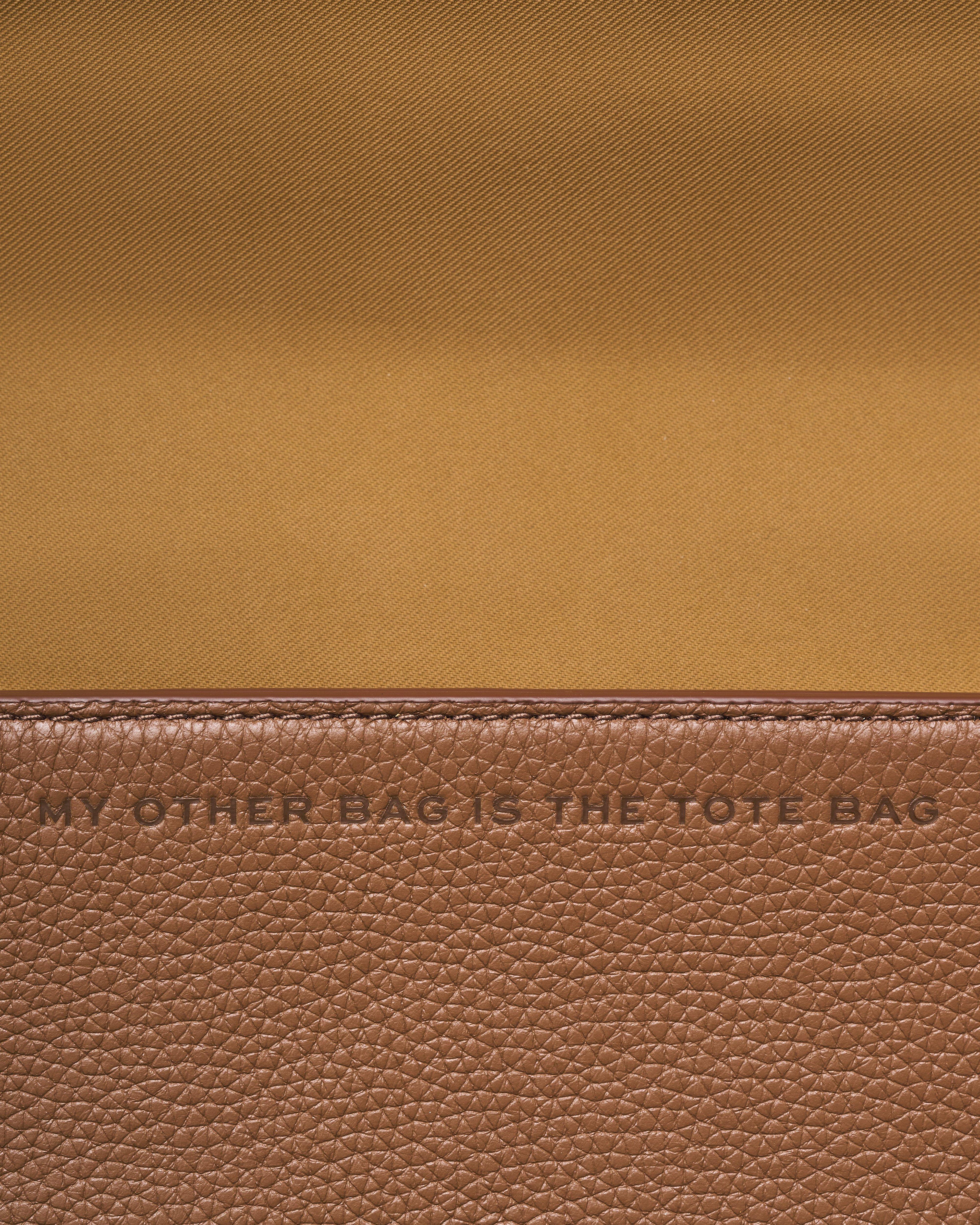 Mini bag, major personality. This crossbody silhouette is inspired by our bestselling tote and is finished with the words "my other bag is the tote bag" debossed on the inside. Crafted in full grain leather, each bag is designed with our namesake branding and features one slip pocket and eight card slots. Carry yours as a clutch or attach the adjustable, removable logo webbing strap for hands-free styling. Part of THE collection. Shop Marc Jacobs The Leather Mini Bag