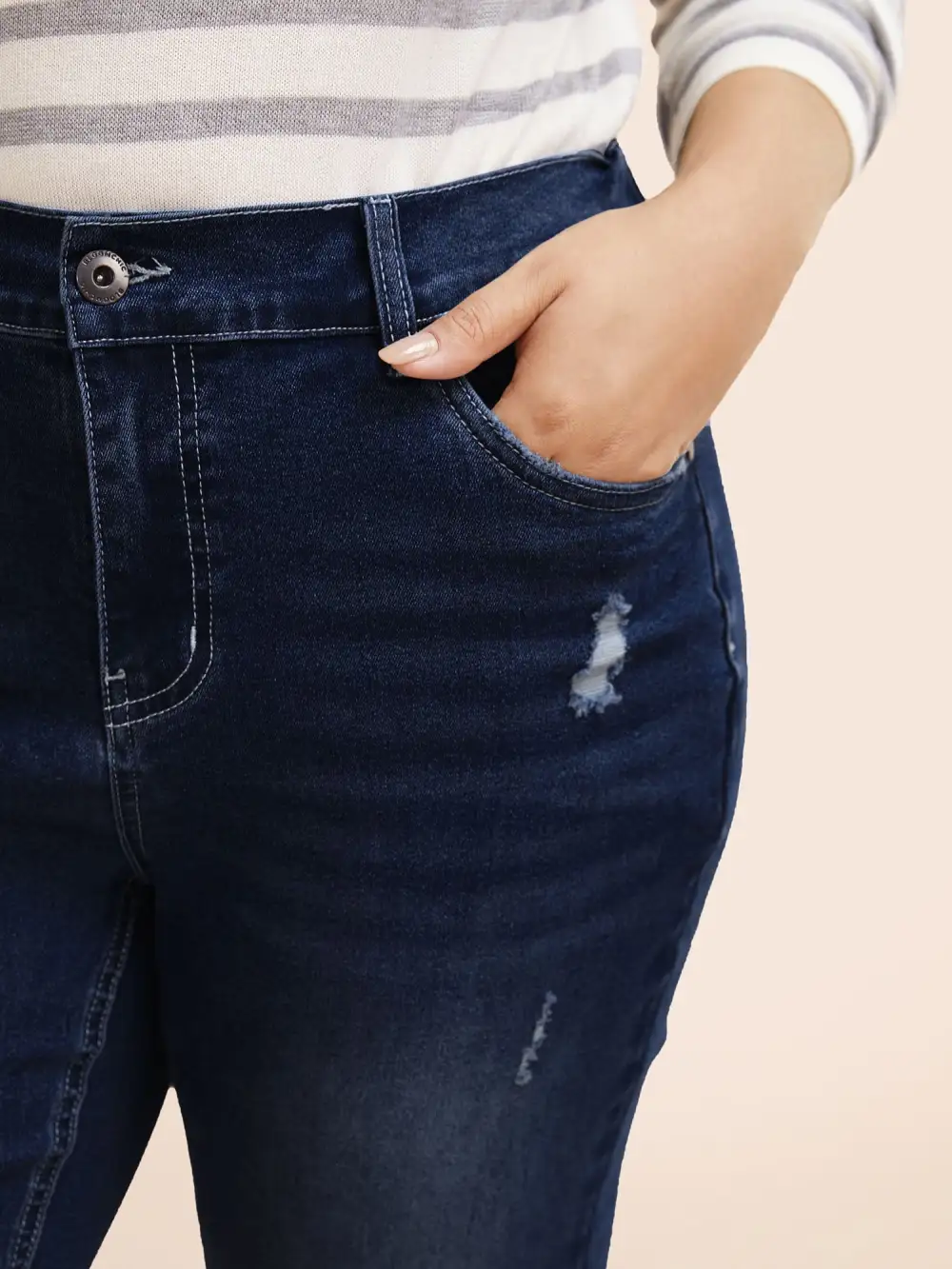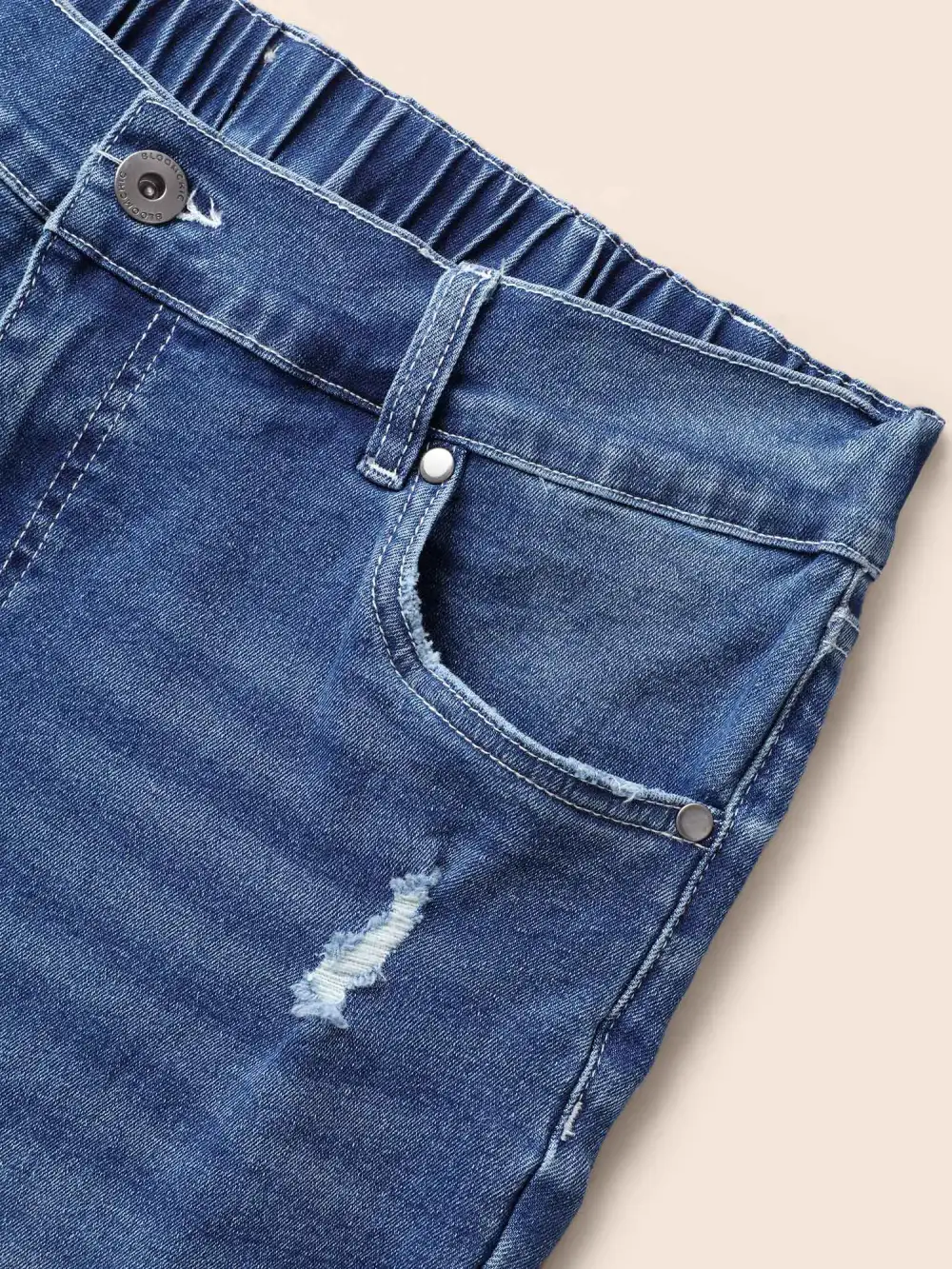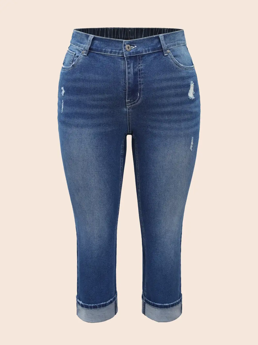 Details:Distressed, Roll Hem, Button