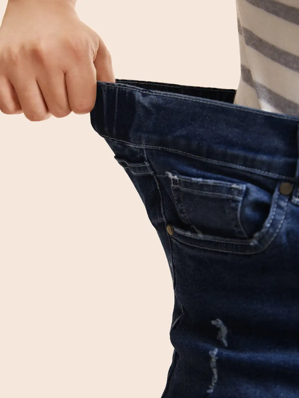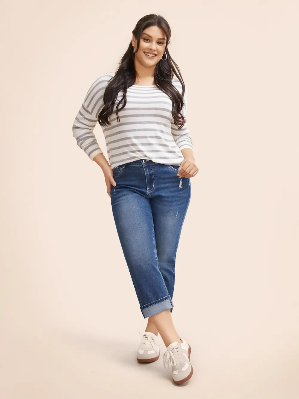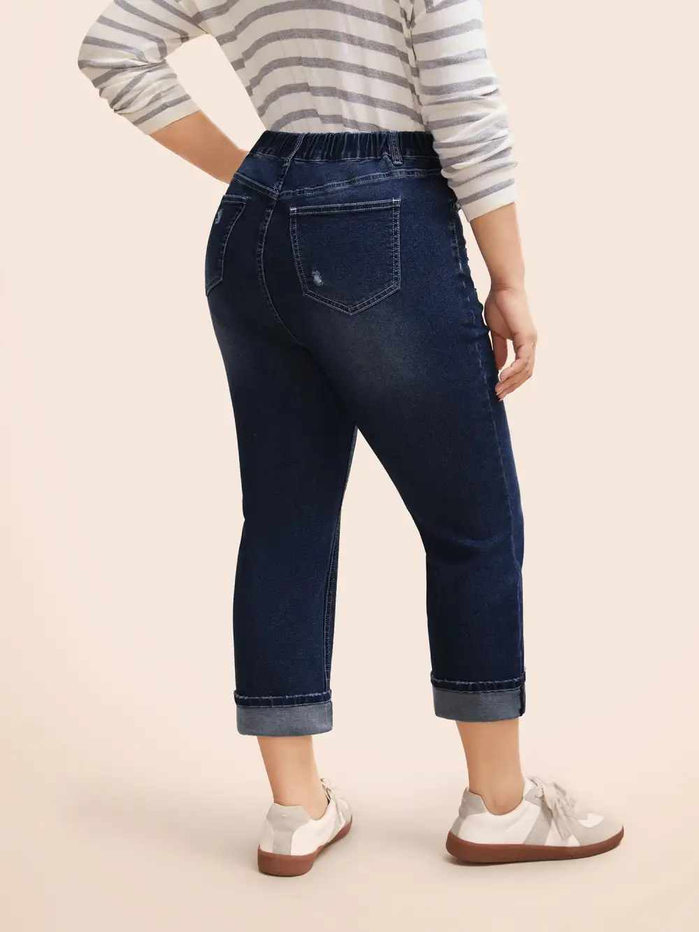 Details:Distressed, Roll Hem, Button