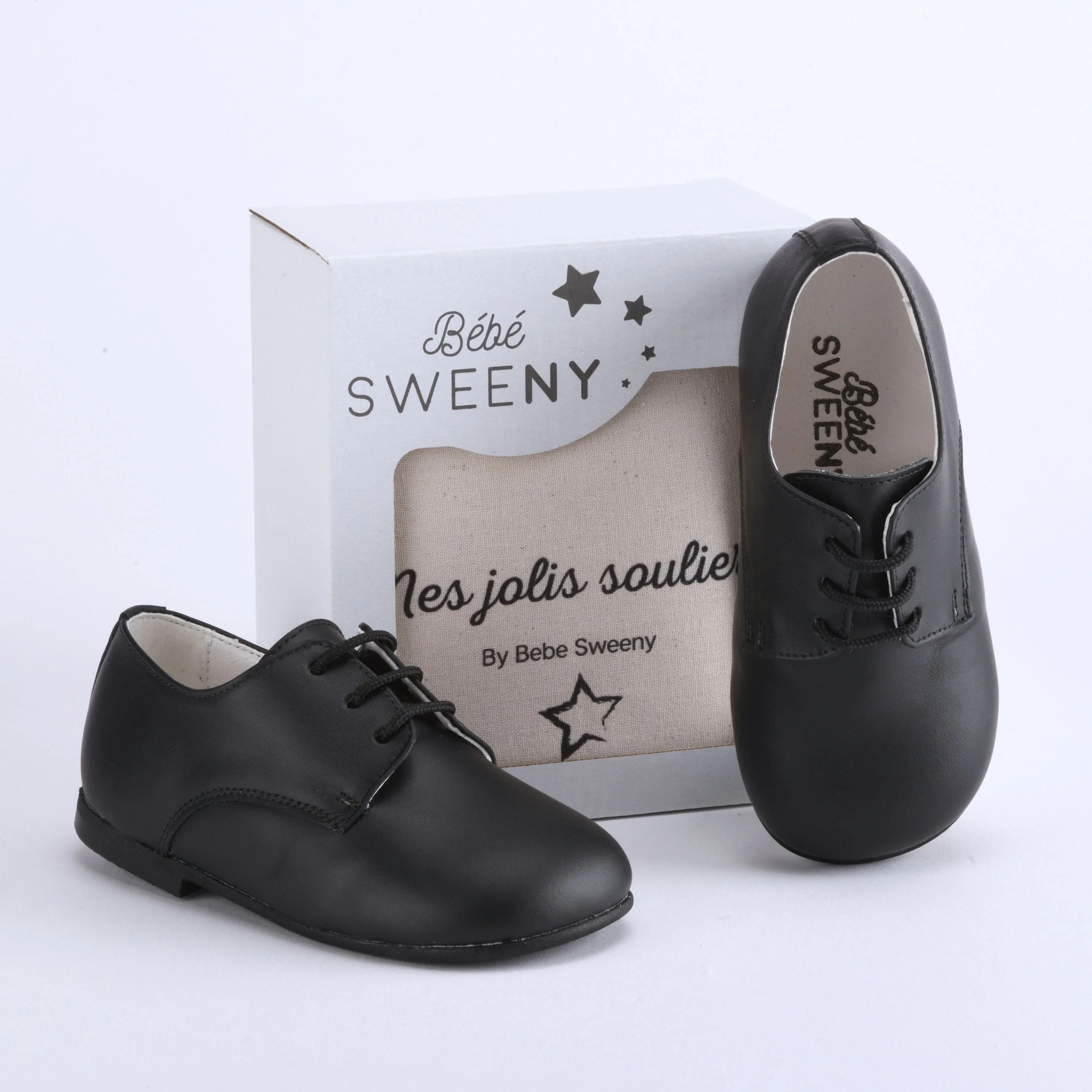 A pair of classic black shoes for boys made in soft leather and fasten with laces for a smart look. These smart lace-up shoes are lined in soft leather with a smooth rubber outsole.