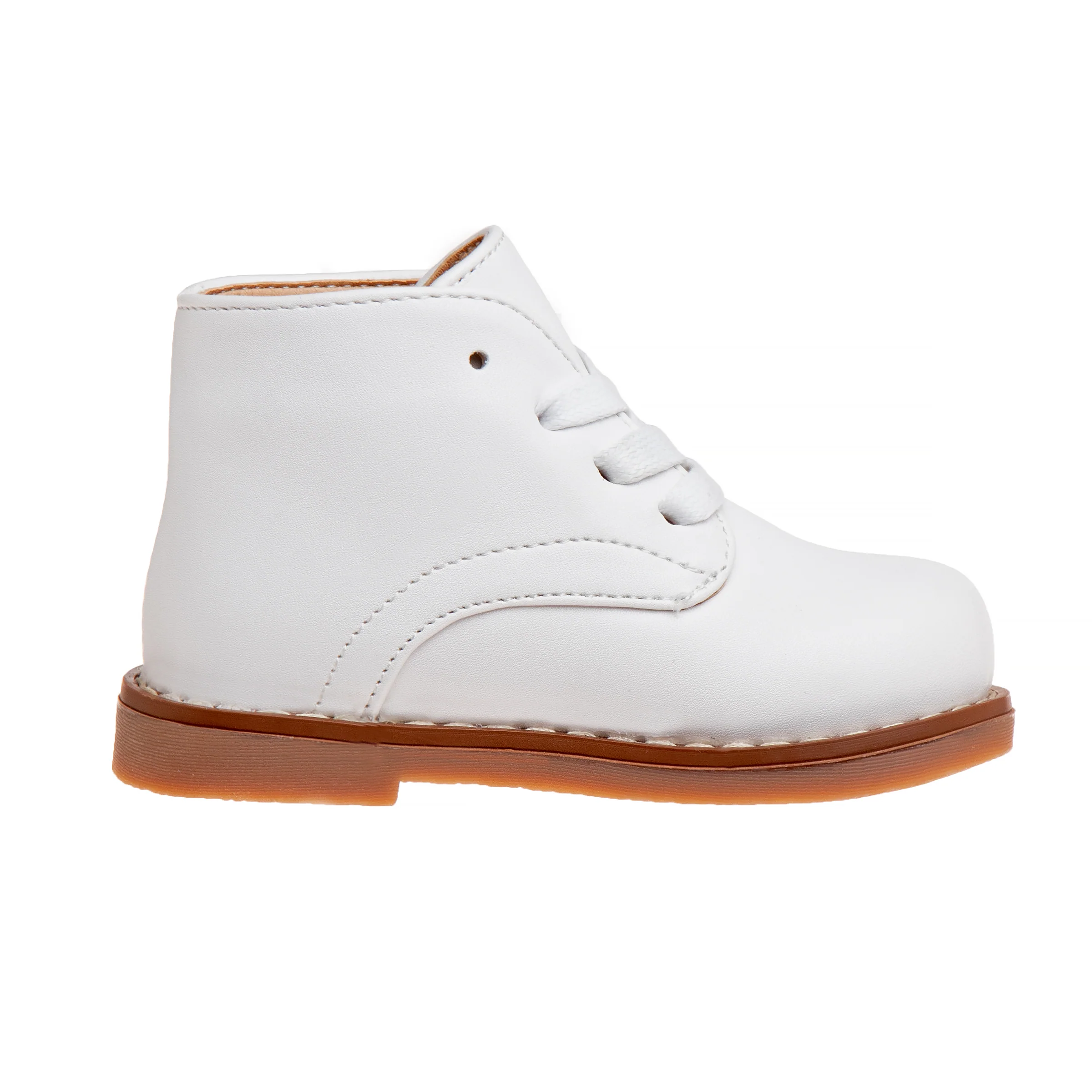 Looking for a pair of shoes that can keep up with your little one's adventures? Protect their feet outside as they take their first steps with our first walkers. The come with durable and comfortable faux leather. These shoes feature a stitched sole that provides extra durability. They also have a lace up closure that ensures a snug and secure fit. Whether your child is taking their first steps or exploring the world, these shoes will support their feet and protect them from bumps and bruises. Our infant/toddler walking shoes come in various colors and sizes to suit your child's style and preference. Order yours today and watch your child walk with confidence and joy!
